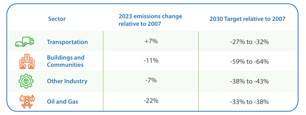 Of the four sectors of BC’s economy that generate GHGs, three report emission reductions since 2007: