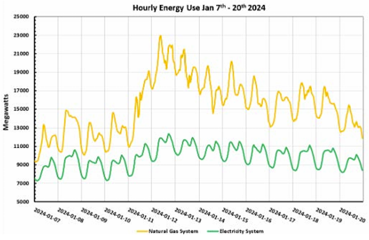 The same report shows that, in a January 2024 cold snap when energy demand was at its peak, natural gas provided around twice as much energy as electricity.
